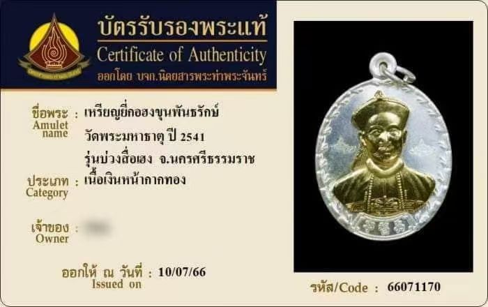 二哥豐(Khun Pantharak)- 屈帕瑪哈泰, 附真品鑑證卡
