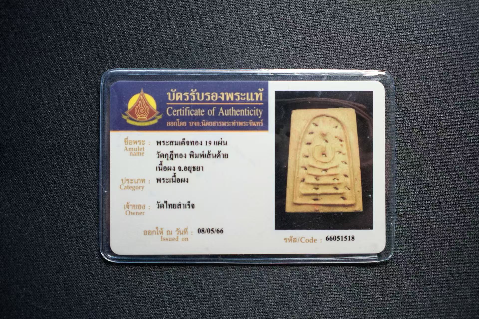 帕崇迪固 19 金是泰國大城府古老寺廟“屈固跌燙”出品的珍稀聖物,由著名神僧“龍普哆”與“帕亞贊醒”於19世紀共同製作,保存完好,極為罕見。此聖物以崇迪法相為基礎,融合大城府時期歷史與佛教力量,象徵佛陀慈悲與智慧,助佩戴者平安無禍、運氣吉祥、事業順遂、人緣和諧。