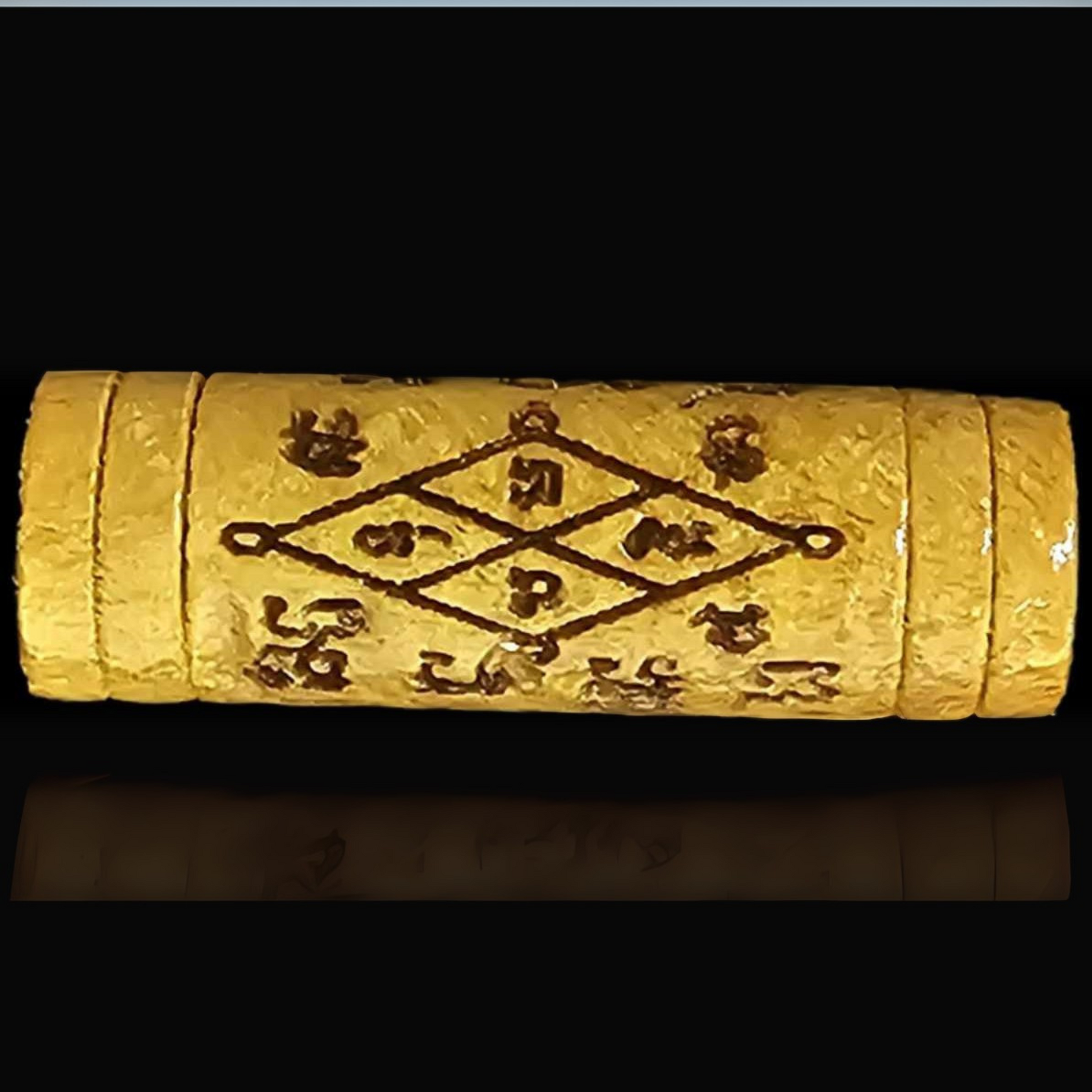 聖物特別之處: 龍婆宋沙親口解釋:2025年年中,他受邀前往老撾宣法。某日烈日當空,他抬頭直視陽光時,天空雲彩隱現“飛龍”形態,直衝太陽中心。返泰不久,當地村民驚覺自家林中百年老“卡倫樹”一夜倒塌。LP宋沙遂取其木材製作“特括派也娜(龍神)”符管,象徵天降吉兆與神靈加持。