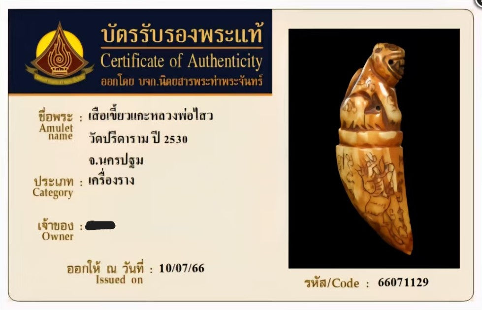 舍橋虎牙 - 龍婆薩懷1987年,附真品鑒證卡