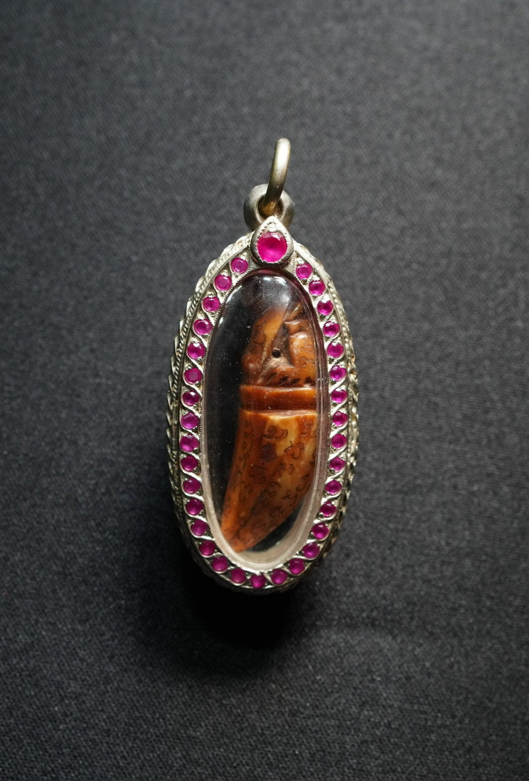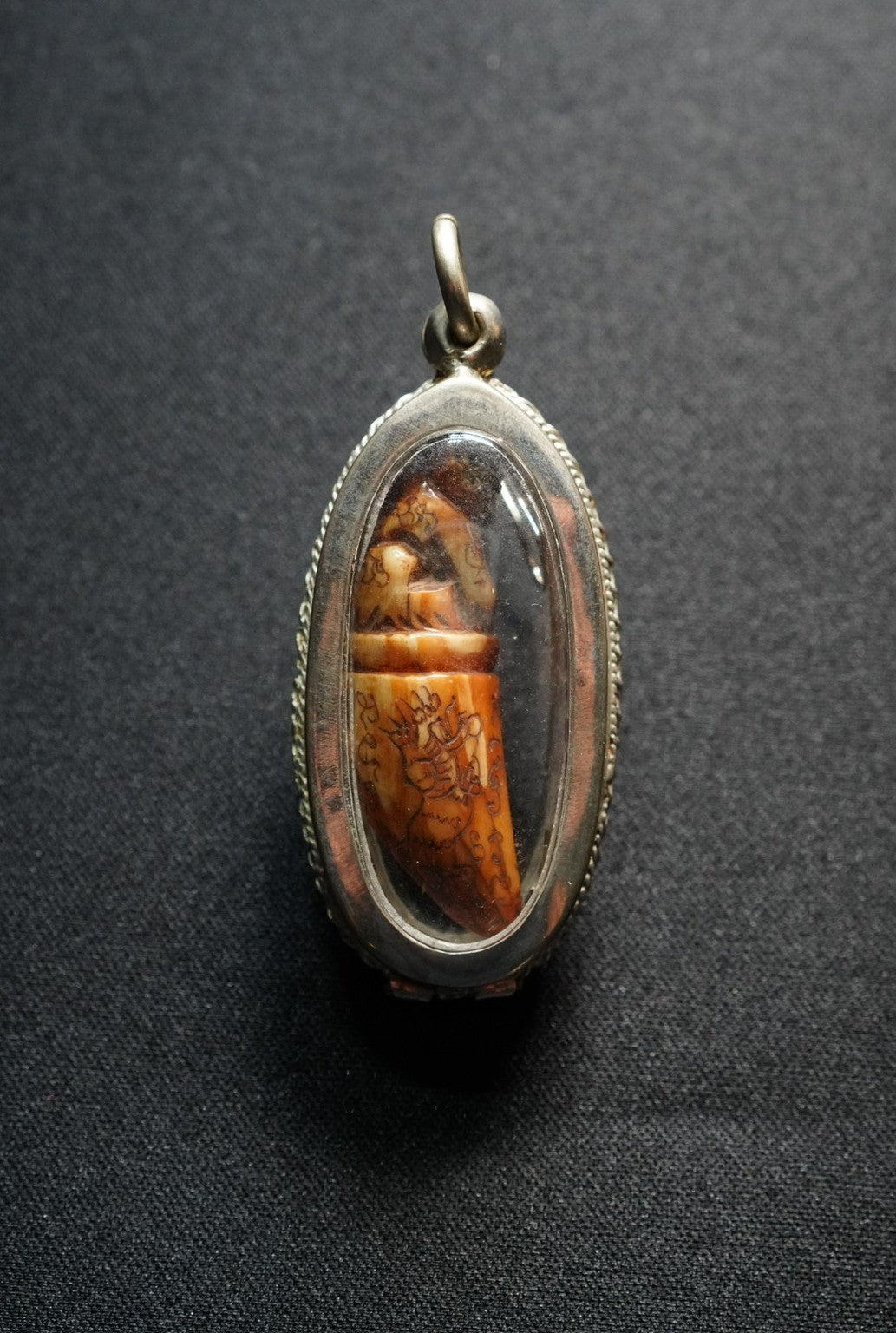 舍橋虎牙是著名神僧“龍婆薩懷”於1987年親自製作的稀有護身聖物,以虎牙為材質,上刻多種符印,蘊含強大的佛陀功德力量。該聖物廣受泰國信徒認可,能增加貴人運、人緣、個人魅力、財富及權力,尤其以刀槍不入、躲避危險的防禦功效聞名。同時,有助商談談判、生意貿易成功,促進財運收益,適合從事商業或需面對風險者佩戴。
