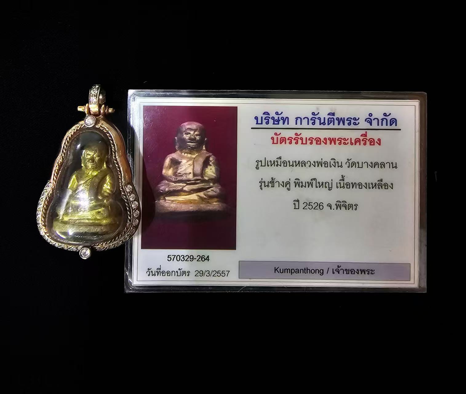 財佛“龍婆銀”雙像大模聖物依據古老模板復刻,於佛曆2526年(1983年)製作,附真品鑑證卡。外觀與古版極似,承載強大招財與守護力量,深受信徒與藏家珍視。